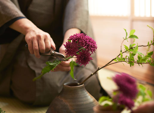 由奈良名门山村御流的花道家在茶室授课,通过包括写生的课程,加深对日本花道、茶道及日本文化的理解。适合对花道有一定见解、经常接触花草的宾客参加。